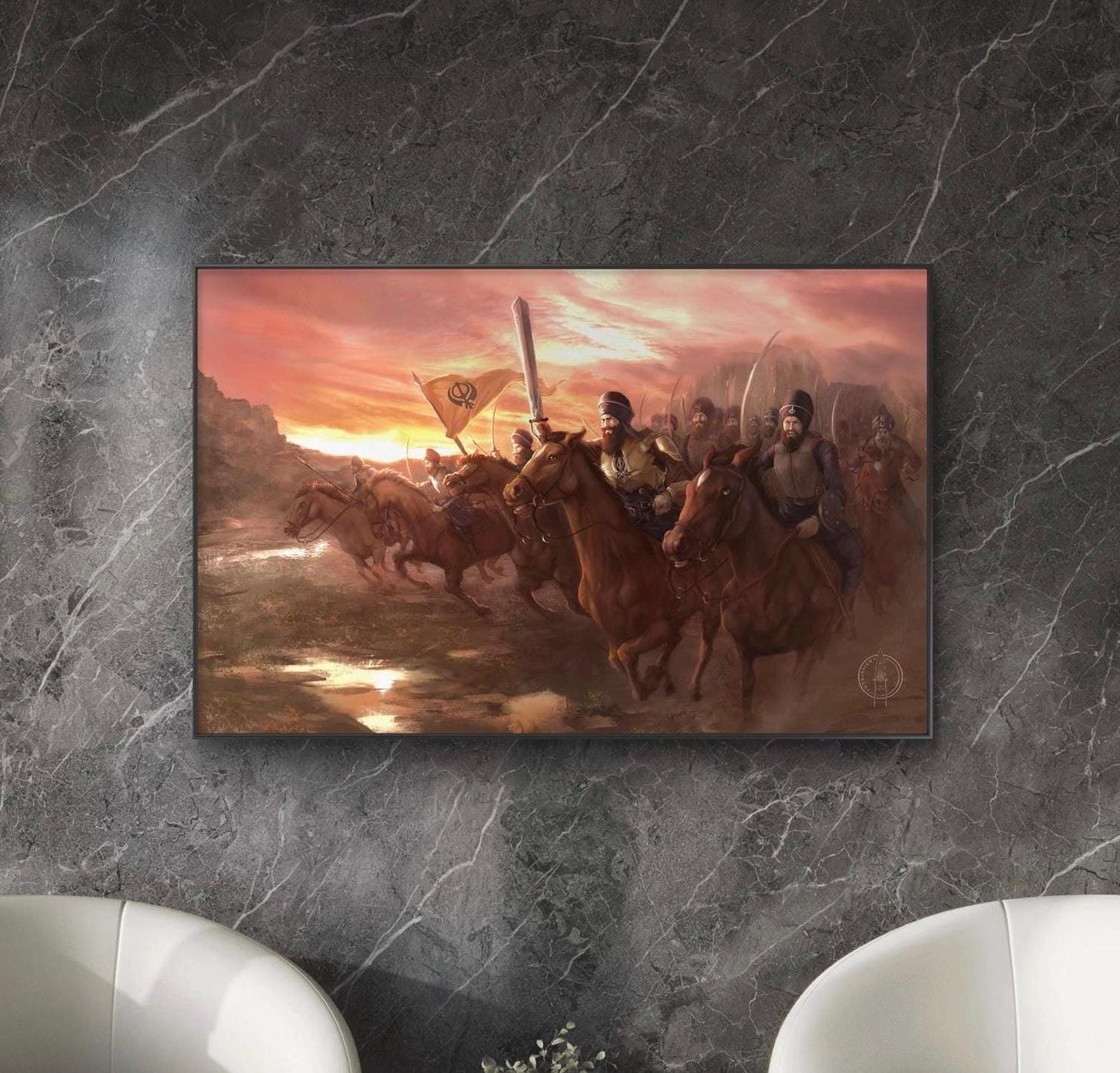 An artwork based on the battle of Chappar Chiri, as depicted in the film 'Chaar Sahibzaade: Rise of Banda Singh Bahadur'. Handmade art by Rajpal Singh Ubhi, November 2022